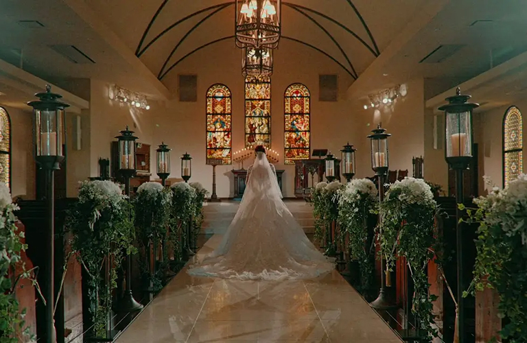 歴史が織りなす神聖な空気感とアンティークな色調が純白のウエディングドレスを一層輝かせます。