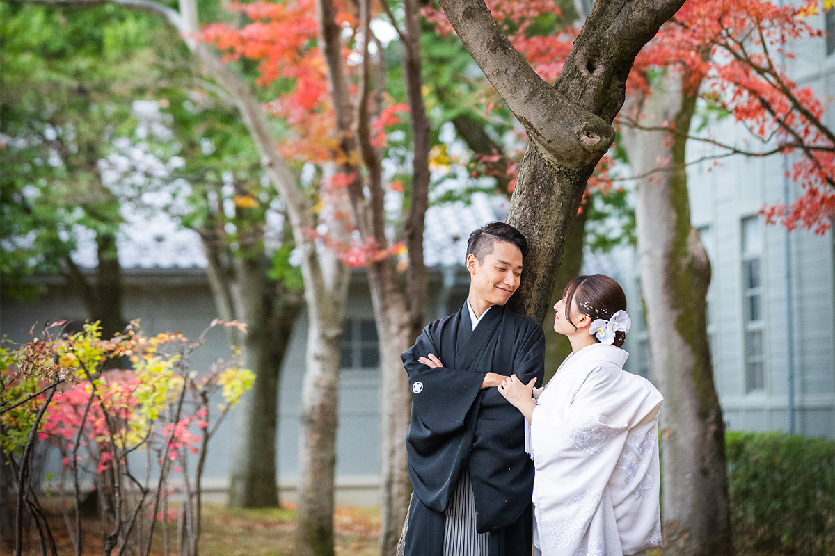 Autumn秋は松本周辺に美しい紅葉スポットが数多くあり、自然が織りなす鮮やかな色彩が写真に映える人気の季節です。落ち着いた雰囲気の中、しっとりとした和装との相性も抜群。